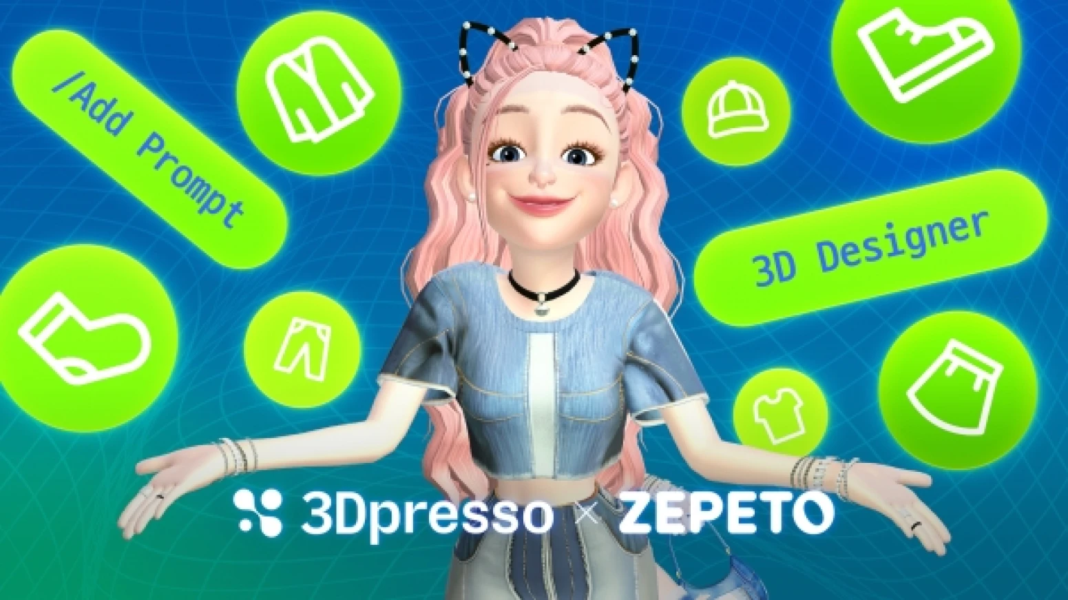 관련기사 보러가기 >네이버 제페토와 협업하여 3D 프레소의 텍스처 생성 기능을 활용한 아이템 제작 이벤트를 진행하였습니다. 주요 대상이 초,중학생이므로 AI 프롬프트 엔지니어링이 어려울 것으로 판단되어, 누구나 쉽게 프롬프트를 사용할 수 있도록 이미지 선택 기반의 프롬프트 UX를 기획했습니다. 이와 함께 약 500개의 프롬프트를 직접 테스트한 결과로 프롬프트 엔지니어링을 적용하여 사용자가 원하는 형태의 텍스처를 만들 수 있도록 하였습니다.