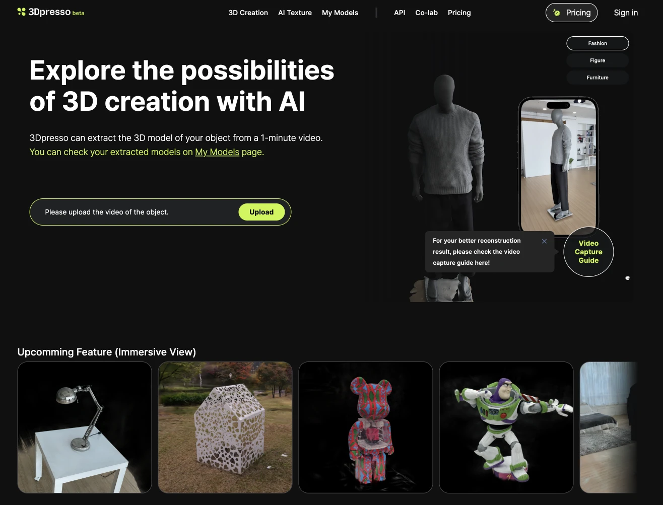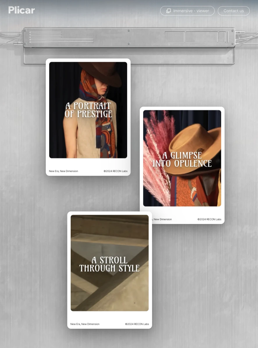 기술을 활용할 때 가장 큰 착각은, 기술이 새롭다면 그 경험도 자동으로 새로울 것이라는 생각입니다. 기술을 어떻게 표현하고 전달하느냐에 따라 사용자의 경험은 크게 달라집니다. 3D AI 스타트업 리콘랩스는 커머스에서 제품을 3D로 돌려볼 수 있는 AI 기반 재구성 기술을 제공하고, 이를 제품 상세 페이지에서 뷰어로 활용하는 데 집중하고 있었습니다. 저는 3D의 시각적 신선함과 공간 3D의 깊이감을 활용해 단순한 뷰어가 아닌, 자체로 완성된 콘텐츠인 인터랙티브 웹페이지와 룩북 컨셉을 제안했습니다.