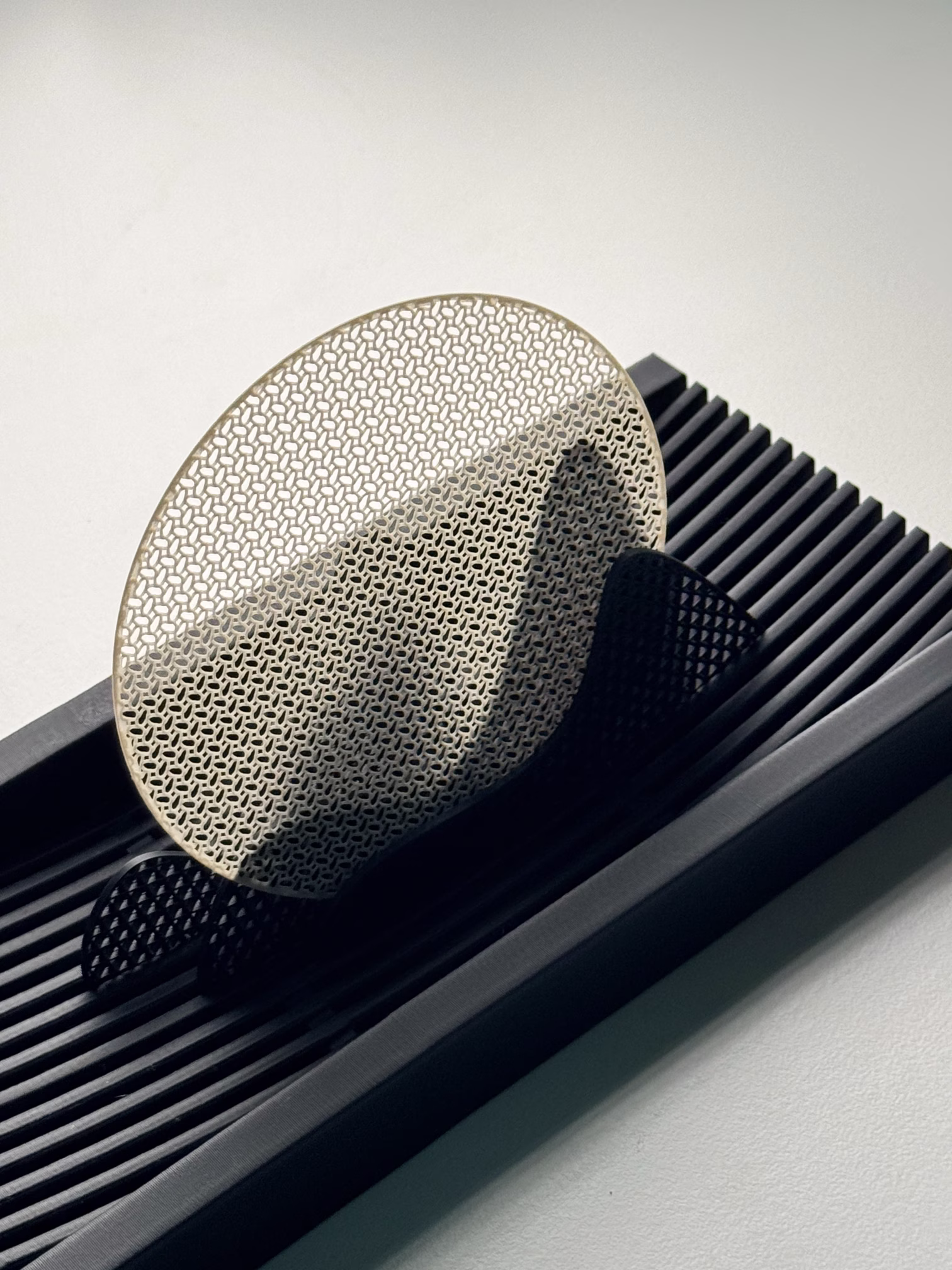 이는 단순한 조형 실험을 넘어, 디지털 패브리케이션(Digital Fabrication)이 전통 공예의 미학을 어떻게 계승하고 확장할 수 있는지를 탐구하는 과정입니다. 금속과 3D 메쉬의 구조적 결합을 통해 만들어진 스팬(Span)과 셰이드(Shade) 시리즈는 기술이 예술적 도구로 기능하는 디지털 크래프트의 가능성을 제시합니다.