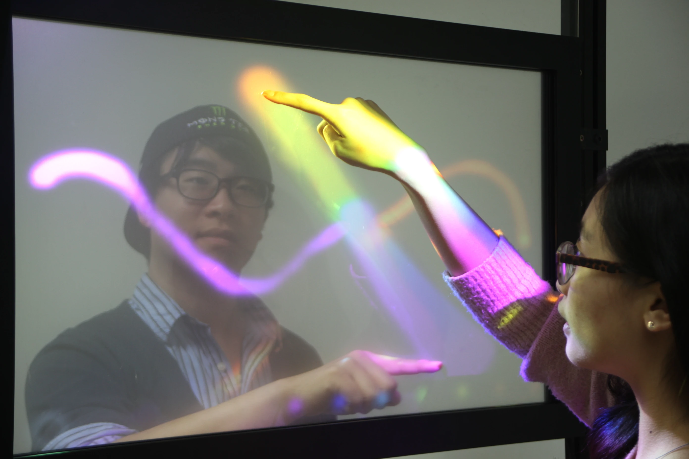 Nowadays, imagining modern buildings without glass is difficult, and glass walls can be found almost everywhere around us. Glass has been one of the most valued materials owing to its transparency. Glass walls' transparency in modern architecture involves two contradictory characteristics: visual continuity and spatial discontinuity. Even though we can see everything through a glass wall, we can hardly hear the sound and cannot touch anything on the opposite side of the wall. Although a glass wall facilitates interpersonal communications beyond a partition, it simultaneously blocks deeper interactions. Can the glass wall be made into an even richer communication medium?